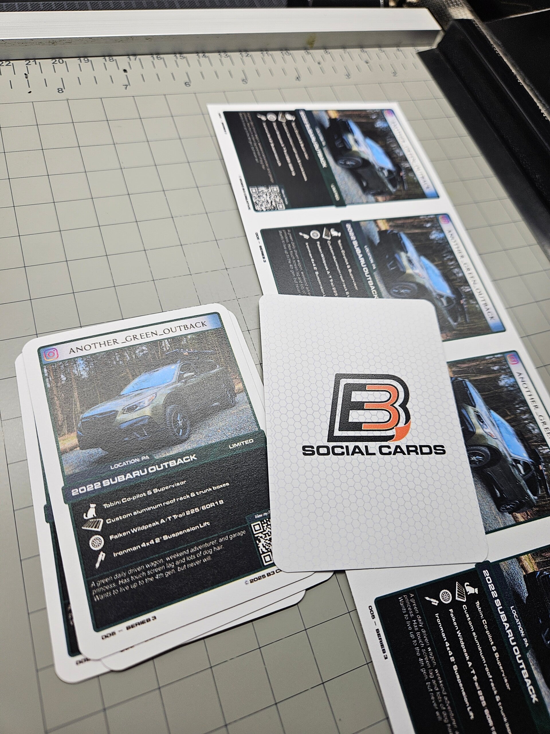 Advertise your social media with these updated, one-of-a-kind trading cards. Each card # is customized by you and meticulously hand crafted by us! Get creative to make your card stand out. Hand them out or trade to promote your account in an unforgettable way!